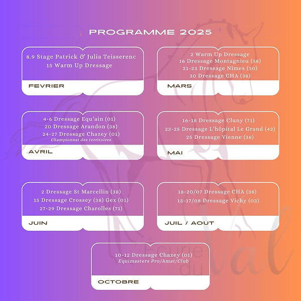 Ces sorties permettent à nos cavaliers et chevaux de progresser dans des conditions variées tout en validant des acquis, de se confronter à la compétition et de valoriser leur travail.